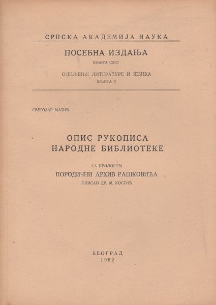 sa prilogom Porodični arhiv Raškovića. Opisao dr. M. Kostić. DOSTUPNO PREKO INTERNETSKE PRODAJE ODMAH, U DUĆANU U ROKU OD 24 SATA.