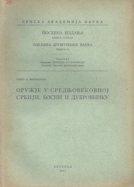 Ova studija predstavlja jedan od najiscrpnijih pregleda razvoja naoružanja i vojne opreme na Balkanu od XI do XV veka. Autor koristi bogatu arhivsku građu, prvenstveno iz Dubrovačkog arhiva, kao i likovne izvore (freske, minijature) i arheološke nalaze kako bi rekonstruisao tadašnji vojni arsenal.