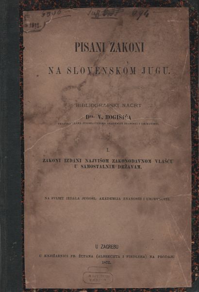 Pisani zakoni na slovenskom jugu I. Zakoni izdani najvišom zakonodovnom vlašću u samostalnim državam