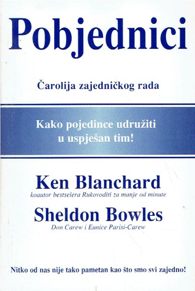 Grupa američkih autora, uspješnih poslovnih ljudi, u knjizi Pobjednici pričaju nam zanimljivu priču o važnosti timske suradnje za uspješno poslovanje. Autori ističu da kao pojedinci možemo postići više ako smo članovi nekog dobrog tima, te nam poručuju: "Nitko od nas nije tako pametan kao što smo svi zajedno!". Prevela s engleskoga Maja Papeš. DOSTUPNO PREKO INTERNETSKE PRODAJE ODMAH, U DUĆANU U ROKU OD 24 SATA.