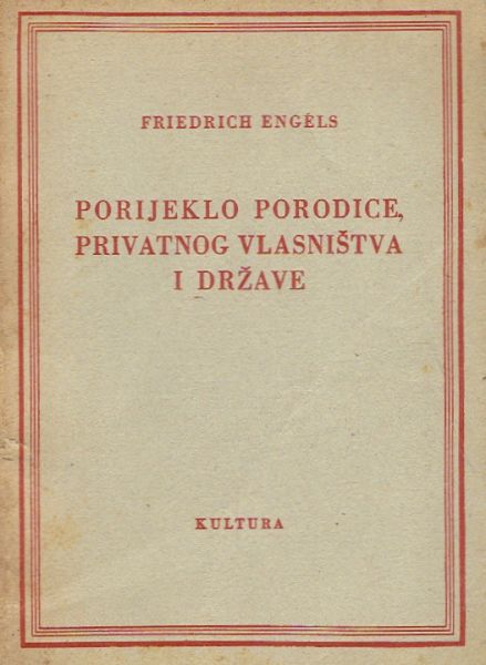 Engels u djelu "Porijeklo porodice, privatnog vlasništva i države" (1884.) analizira evoluciju obitelji od grupnih brakova do monogamije kao rezultat promjena u načinu proizvodnje. Tvrdi da su privatno vlasništvo i klasna podjela uzrokovali podređeni položaj žena, a država nastaje za zaštitu interesa vlasnika.