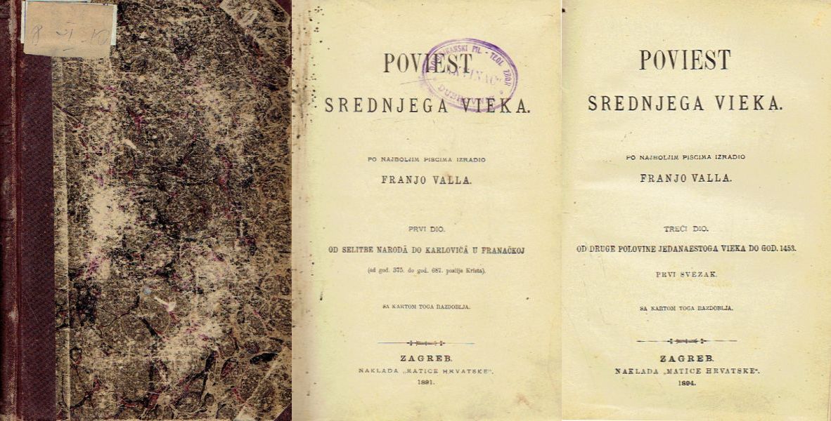 I. Od selitbe naroda do Karlovića u Franačkoj (od god. 375. do god. 687. poslije Krista). Sa kartom toga razdoblja. III/1. Od druge polovine jedanaestoga vieka do god. 1453. Prvi svezak. Sa kartom toga razdoblja.