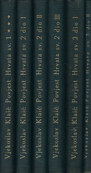 1. Svezak prvi: Prvo doba: Vladanje knezova i kraljeva hrvatske krvi (641-1102.), drugo doba: Vladanje kraljeva Arpadovića (1102-1301.); 2. Svezak drugi: Prvi dio: treće doba: Vladanje kraljeva iz raznih porodica (1301-1526), prva knjiga: Anžuvinci i Sigismund do gubitka Dalmacije (1301-1409.); 3. Svezak drugi: Drugi dio: treće doba: Vladanje kraljeva iz raznih porodica (1301-1526), druga knjiga: od gubitka Dalmacije do Matije Korvina (1409-1457.); 4. Svezak drugi: Treći dio: treće doba: Vladanje kraljeva iz raznih porodica (1301-1526), treća knjiga: doba kralja Matijaša Korvina i Jagelovića (1458-1526.); 5. Svezak treći: Dio prvi: četvrto doda: Vladanje kraljeva iz porodice Habsburga (1527-1740), prva knjiga: doba kraljeva Ferdinanda I., Maksimilijana i Rudolfa (1527.-1608.); 6. Svezak treći: Dio drugi: Hrvatsko kraljevstvo za prva tri Habsburgovca (1527.-1608).