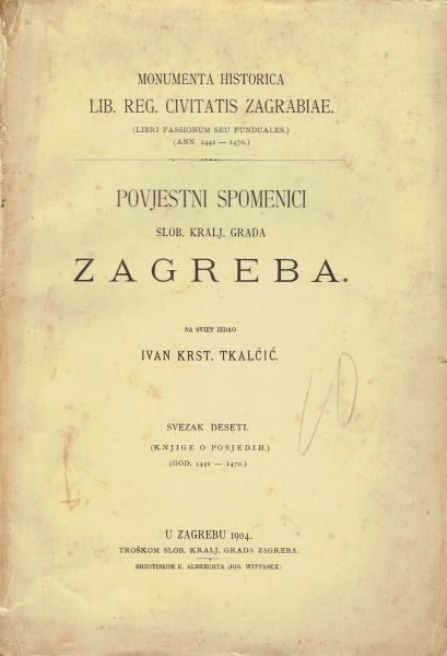 Povjestni spomenici Slob. kralj. grada Zagreba priestolnice Kraljevine dalmatinsko-hrvatsko-slavonske X. (Knjige o posjedih)(god. 1441-1470.)