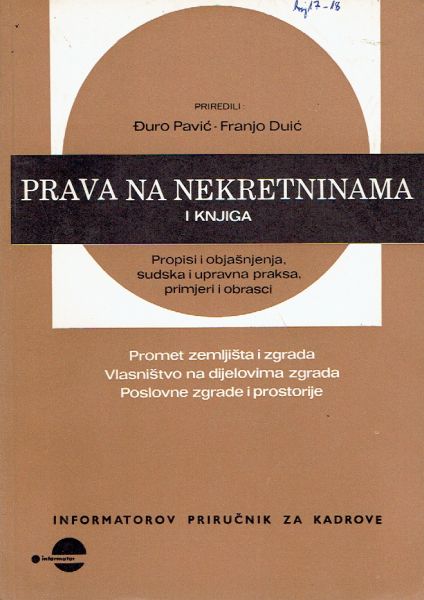 Prava na nekretninama I. Promet zemljišta i zgrada. Vlasništvo na dijelovima zgrada. Poslovne zgrade i prostorije