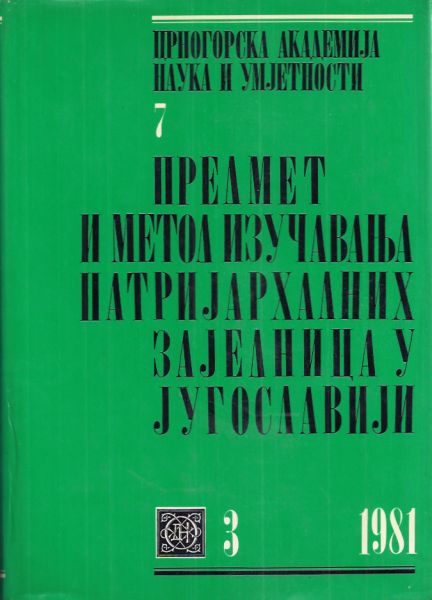 Predmet i metod izučavanja patrijarhalnih zajednica u Jugoslaviji