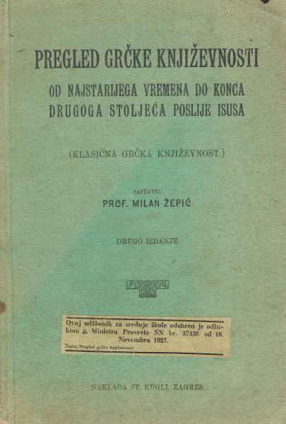 Pregled grčke književnosti od najstarijega vremena do konca drugoga stoljeća poslije Isusa (klasična grčka književnost) (2.izd.)