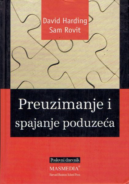 Autori su pružili cjelovito osobno iskustvo u složenom postupku preuzimanja i spajanja više od stotinu poduzeća. Ova knjiga daje odgovorna ključna pitanja: Hoće li pripajanje poduzeća unaprijediti buduće poslovanje? Zašto i u kojim slučajevima pripajanje poduzeća podiže novostvorenu vrijednost poduzeća? Kada je najbolji trenutak za početak spajanja poduzeća? Kako treba rješavati probleme koji nastanu kada stvari ne krenu kako je planirano? Svaki od odgovora na ova pitanja popraćen je empirijskim istraživanjima koja nose podatke o konkretnim odlukama. Knjižarska cijena je 39,15 eura. DOSTUPNO PREKO INTERNETSKE PRODAJE ODMAH, U DUĆANU U ROKU OD 24 SATA.