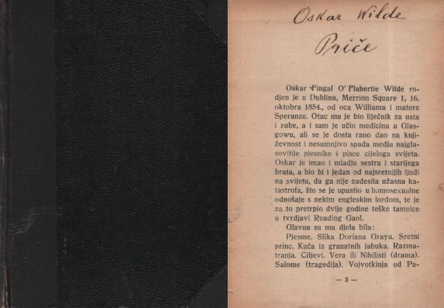 Sadržaj: 1. Sretni princ; 2. Slavuj i ruža; 3. Vjerni prijatelj; 4. Sebični div; 5. Pjesme u prozi (Umjetnik, Dobrotvor, Učenik, Majstor, Kuća suda, Učitelj mudrosti); 6. Model i milijunaš. Preveo August Harambašić.