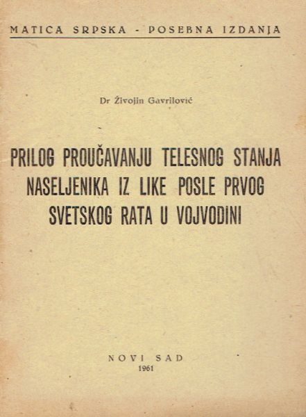Prilog proučavanju telesnog stanja naseljenika iz Like posle Prvog svetskog rata u Vojvodini