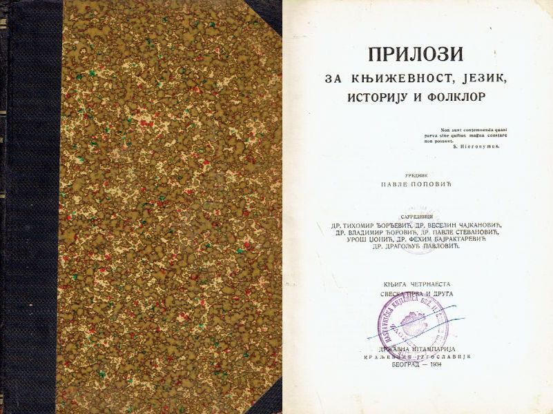 Prilozi za književnost, jezik, istoriju i folklor XIV/1-2/1934
