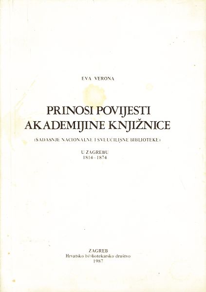Prinosi povijesti akademijine knjižnice (sadašnje Nacionalne i sveučilišne biblioteke) u Zagrebu 1814-1874