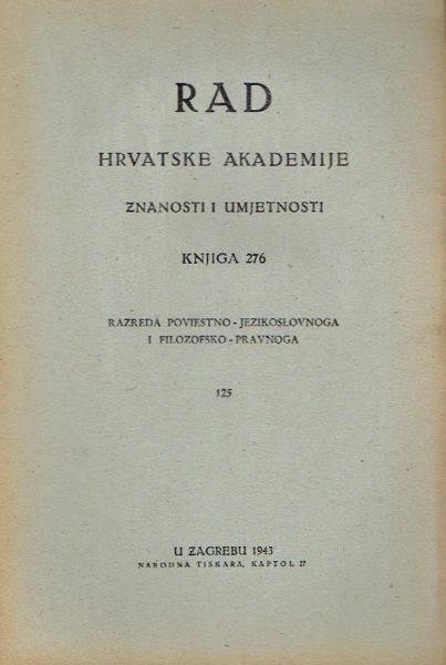 Rad HAZU. Knjiga 276. Razreda poviestno-jezikoslovnoga i filozofsko-pravnoga 125/1943