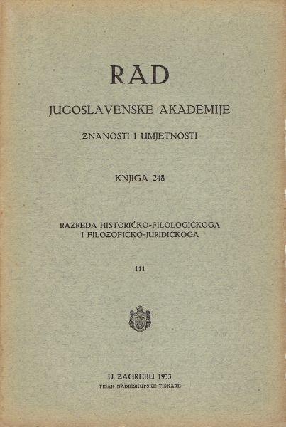 Rad JAZU. Knjiga 248. Razreda historičko-filologičkoga i filozofičko-juridičkoga 111/1933