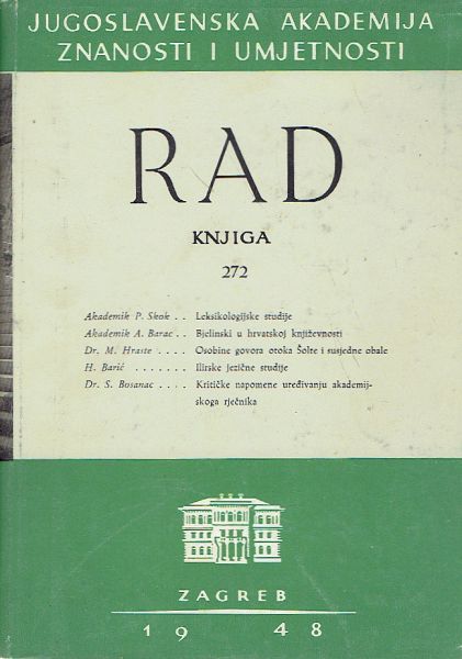 Rad JAZU. Knjiga 272. Odjel za jezik i književnost I/1948
