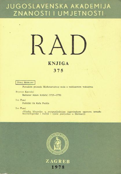 Rad JAZU. Knjiga 375. Razred za društvene znanosti XVIII/1978
