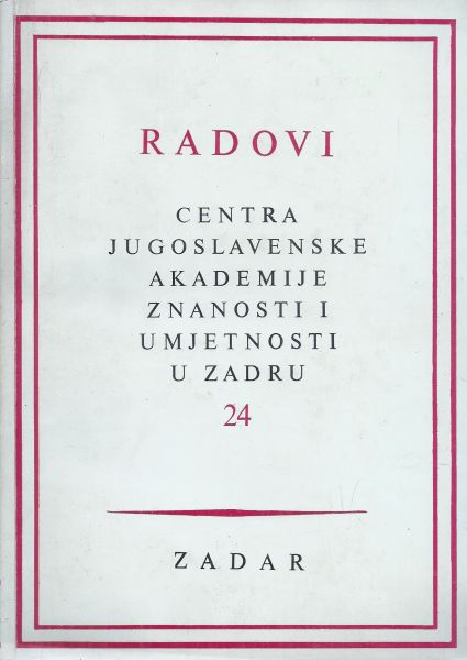 Sadržaj: Damir Magaš: Vir. Prilog geografskim istraživanjima u zadarskoj regiji; Zdenko Brusić: Prethistorijski podmorski nalazi na području južne Liburnije; Danilo Klen: Dva ugovora iz 1463. godine o preseljavanju seljaka s područja šibenske općine u Istru; Maren M. Freidenberg: Dinamika gradske strukture u Dalmaciji u XIV-XVI stoljeću itd.