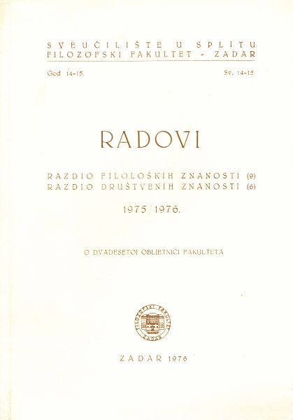 Radovi Filozofskog fakulteta u Zadru 14-15(9, 6)/1975-76. O dvadesetoj obljetnici fakulteta