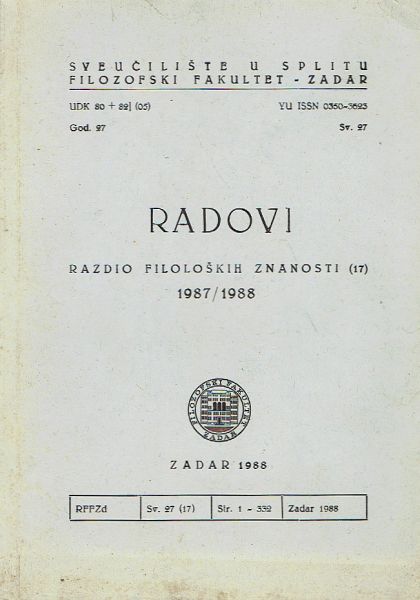 Radovi Filozofskog fakulteta u Zadru 27(17)/1987-88