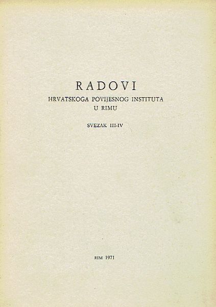 Radovi Hrvatskoga povijesnog instituta u Rimu III-IV. Posvećeni o. Stjepanu Sakaču