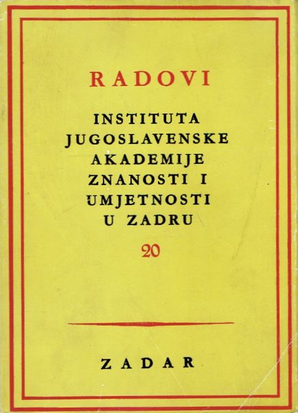 Sadržaj: Šime Peričić: Prilog poznavanju talijanske okupacije Dalmacije od 1918-1923 g.; Roman Jelić: Potalijančivanje hrvatskih prezimena u Zadru za vrijeme fašizma; Stjepan Antoljak: Zadarski knez Pavoa Zrinski; Kosta Milutinović: Srbi Ilirci u Zadru; Josip Lučić: Prožimanje nsela i grada u dalmatinskom pojasu u srednjem vijeku; Seid Traljić M.: Tursko mletačke granice u Dalmaciji u XVI i XVII st. itd.