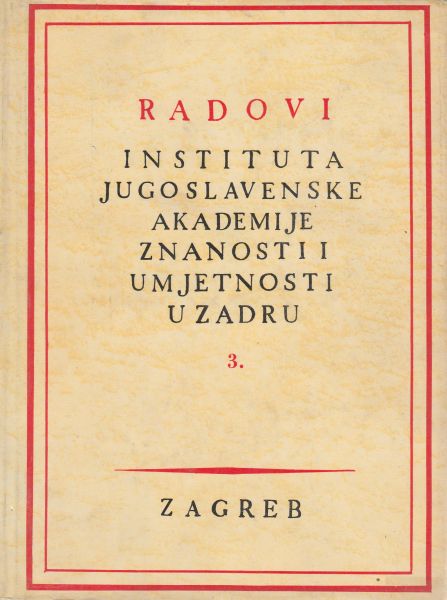 Sadržaj: Grga Novak: Prvi dalmatinski sabor i događaji s njim u vezi; Josip Hamm: Iz problematike čakavskih govora I. Cakavizam i njegova geneza; Viktor Novak: Nova kategorija dalmatinskih historijskih izvora od VIII. do XII. stoljeća itd.