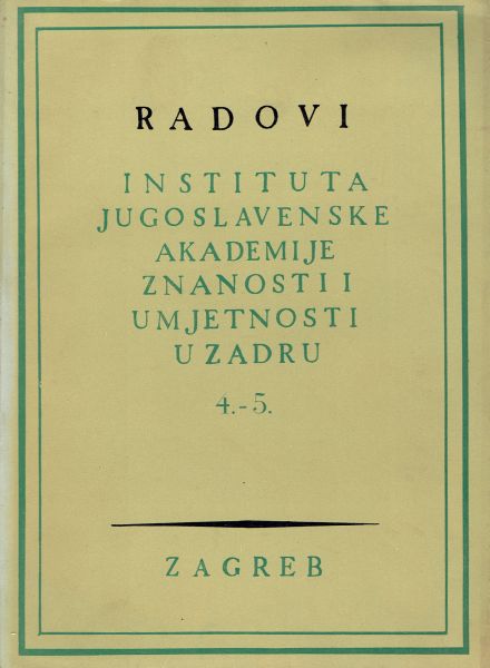 Sadržaj: Grga Novak: Političke prilike u Dalmaciji 1962.-1965.; Žarko Muljačić: Dva priloga povijesti dubrovačkih akademija; Maja Novak: Generalni providuri Dalmacije i Albanije u XVIII. stoljeću; Seid M.Traljić: Tursko-mletačko susjedstvo na zadarskoj krajini XVII. stoljeća; Šime Batović: Predmeti osobitih oblika s područja Liburna itd.