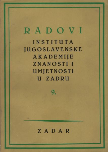 Sadržaj: Grga Novak: Kako je došlo do pobjede Hrvata u Splitu god. 1882.; Stjepan Antoljak: Izumiranje i nestanak hrvatskog plemstva u okolici Zadra; Ivo Petricioli: Ostaci stambene arhitekture romaničkog stila u Zadru; Nikola Čolak: Poljoprivreda zadarske komune u ranom srednjem vijeku itd.