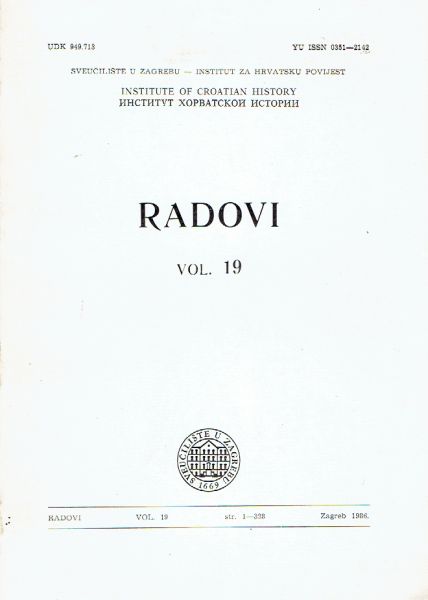 Sadržaj: Miroslav Brandt: Tri starozavjetne teme; Neven Budak: Pravni položaj serva i famula u komunalnim društvima na istočnom Jadranu; Bogumil Hrabak: Turske provale i osvajanja na području današnje severne Dalmacije do sredine XVI stoleća itd.