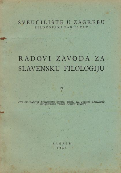 Ovi su Radovi posvećeni sveuč. prof. dru Josipu Badaliću o sedamdeset petoj godini života. DOSTUPNO PREKO INTERNETSKE PRODAJE ODMAH, U DUĆANU U ROKU OD 24 SATA.