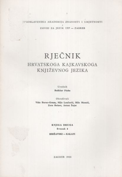 Rječnik hrvatskoga kajkavskoga književnog jezika II/4 (hiršavski-kalati)