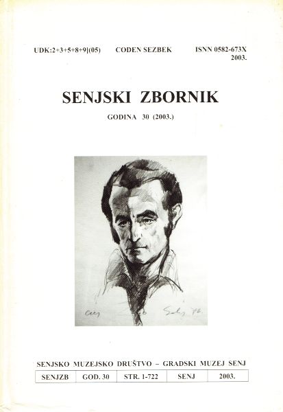 Sadržaj: In memoriam Prof. Ante Glavičić 1931.-2003.; Ante Glavičić: Pregled starokršćanske i srednjovjekovne baštine Like, Podgorja i grada Senja; Nenad Cambi: Bilješke o japodskim urnama i sarkofagima; Zorislav Horvat: O nekim osobinama sakralne arhitekture u Lici nakon protherivanja Turaka; Enver Ljubović: Senjski plemići i uskoci Hreljanovići i njihovi grbovi; Lelja Dobronić: Templari u Senju; Mihael Sobolevski: Bombardiranje Senja zrakoplovima u Drugom svjetskom ratu; Milana Černelić: Istraživanje tradicijske baštine, identiteta i etnogeneze primorskih Bunjevaca itd.