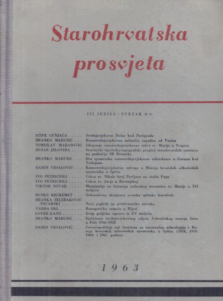 Sadržaj: Stipe Gunjača: Srednjovjekovni Dolac kod Novigrada; Branko Marušić: Ranosrednjovjekovna nalazišta zapadno od Pule; Tomislav Marasović: Iskapanje ranosrednjovjekovne crkve sv. Marije u Trogiru; Viktor Novak: Marginalije uz historiju zadarskog manastira sv. Marije u XII stoljeću itd.