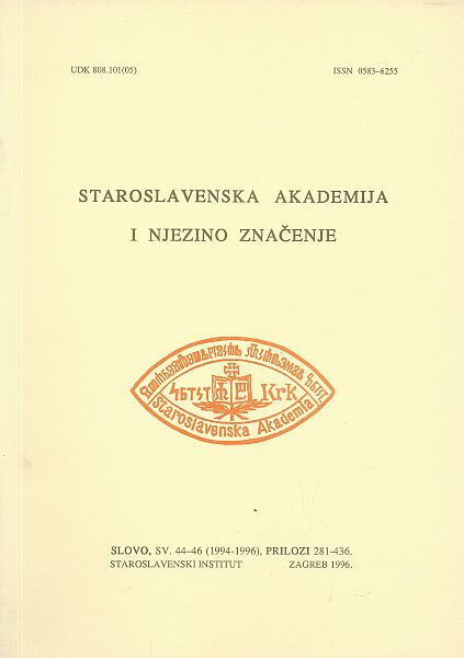 Staroslavenska akademija i njezino značenje (Slovo 44-46/1994-96)