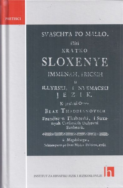 Svaschta po mallo iliti kratko sloxenye immenah i ricsih u illyrski, i nyemacski jezik (pretisak iz 1761)