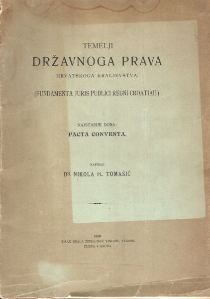 Temelji državnoga prava Hrvatskoga kraljevstva (Fundamenta juris publici Regni Croatiae). Najstarije doba: Pacta conventa