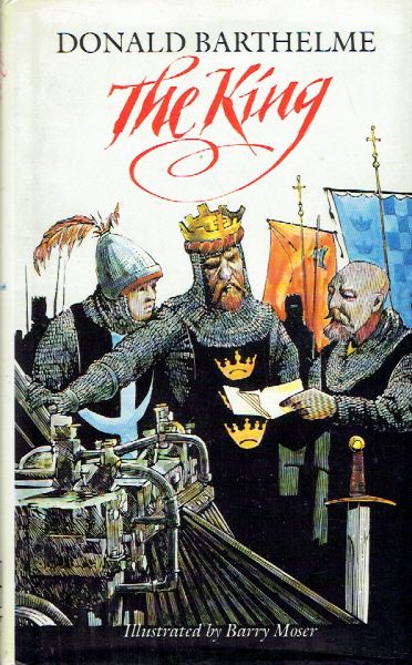 "The King" is a 1990 posthumous novel by the American postmodernist writer Donald Barthelme, which transports King Arthur and the Knights of the Round Table to the backdrop of World War II Britain. The novel uses anachronism and satire to explore themes of chivalry, modern warfare, and the absurdity of the human condition. In The King, Barthelme reimagines the Arthurian legend within the context of the Battle of Britain, right after the fall of Dunkirk. The novel, told in a series of short, unnumbered chapters, juxtaposes medieval ideals of honor with the harsh, mechanized reality and propaganda of modern warfare. Illustrated by Barry Moser. Withdrawn from the library.