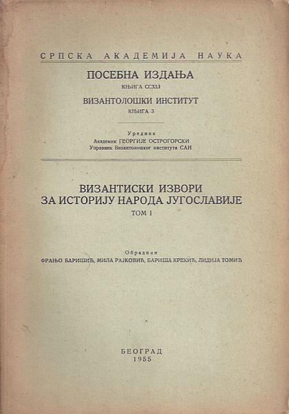 Vizantiski izvori za istoriju naroda Jugoslavije I.