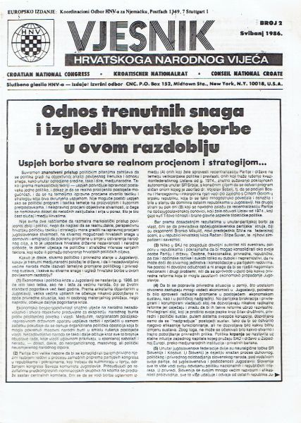 Vjesnik Hrvatskoga Narodnog Vijeća 2/1986
