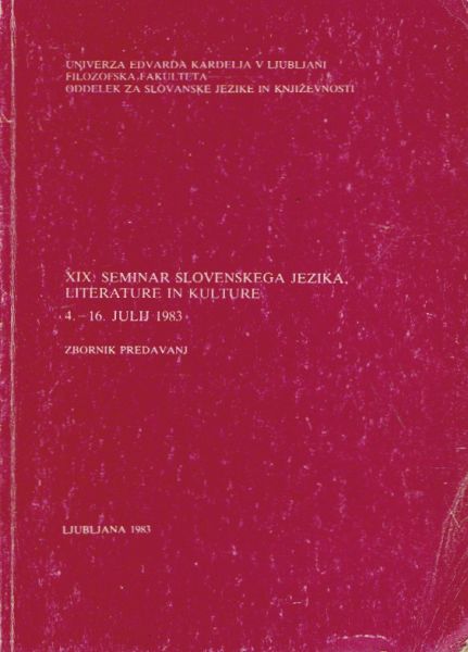 XIX. seminar slovenskega jezika, literature in kulture. Zbornik predavanja