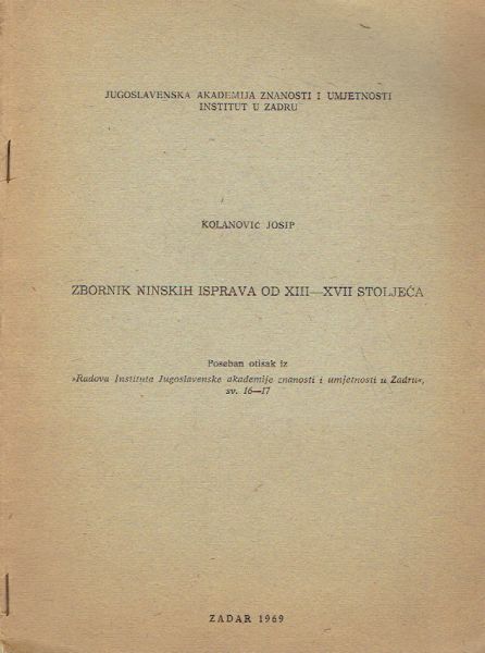 Nakladnik: JAZU. Institut u Zadru