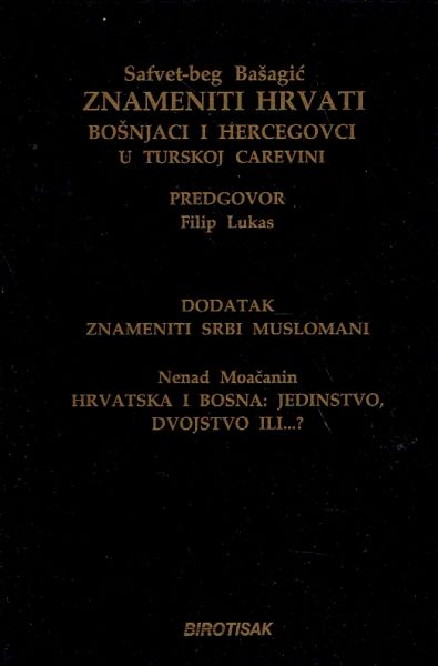 Predgovor Filip Lukas. Dodatak: Milenko M. Vukičević: Znameniti Srbi muslomani; Nenad Moačanin: Hrvatska i Bosna: jedinstvo, dvojstvo ili...?